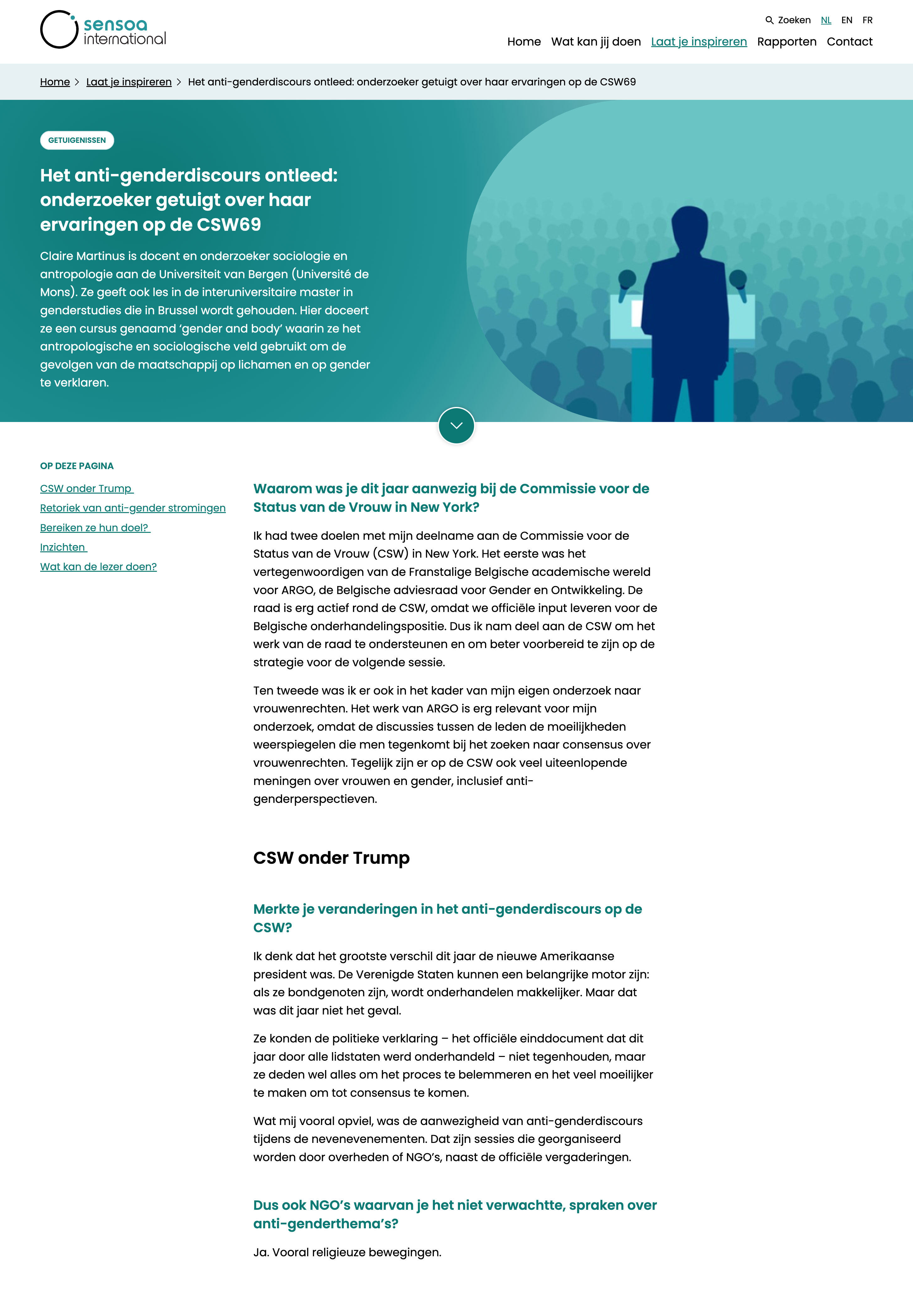 Voor Sensoa International, de internationale beleidsafdeling van Sensoa, het Vlaamse expertisecentrum voor seksuele gezondheid, ontwikkelden wij een website gericht op beleidsmedewerkers.