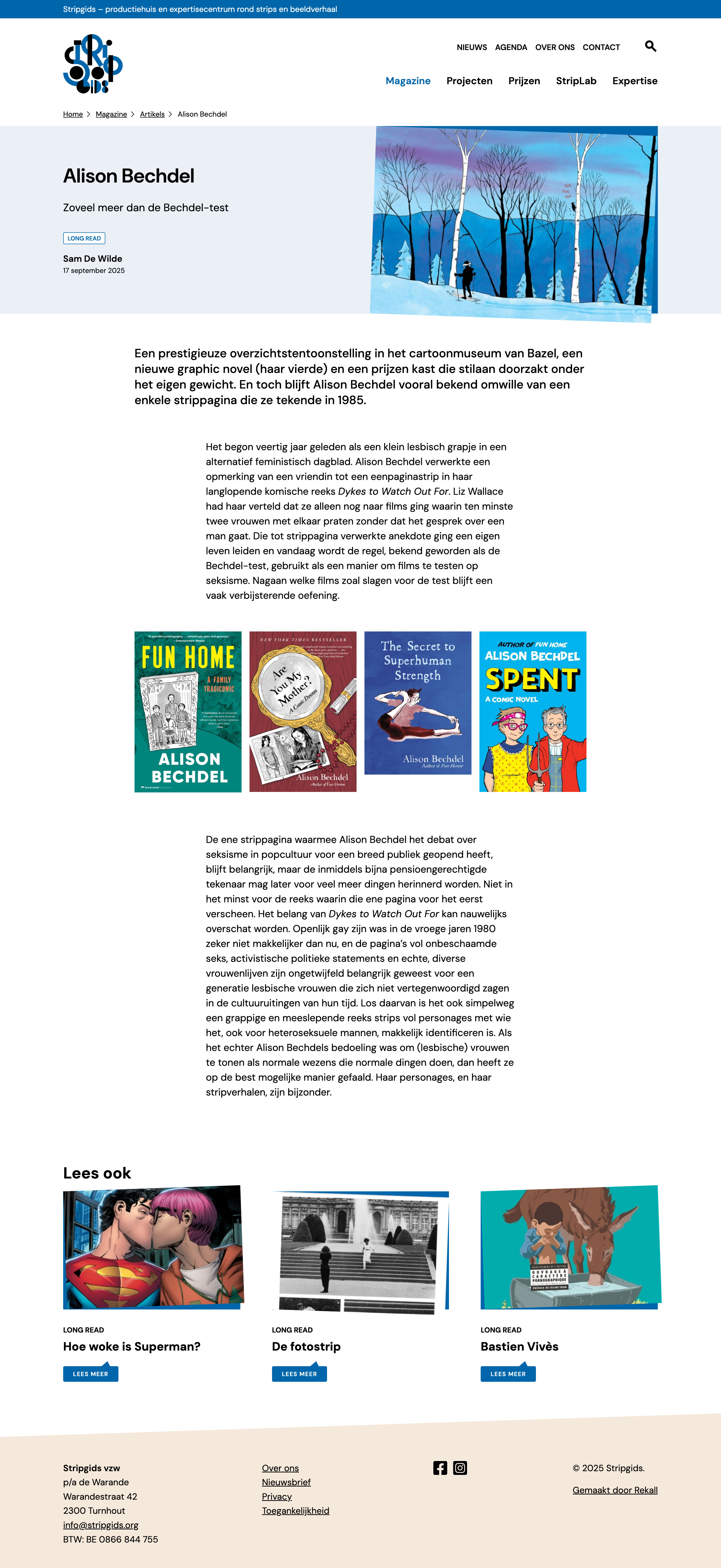 We werden door het team van Rekall professioneel en kordaat op koers gehouden. Blij met het creatieve meedenken, de zin voor detail en eenvoud, en het heldere advies over structuur en toegankelijkheid. Heleen Driesen, Coördinator Stripgids